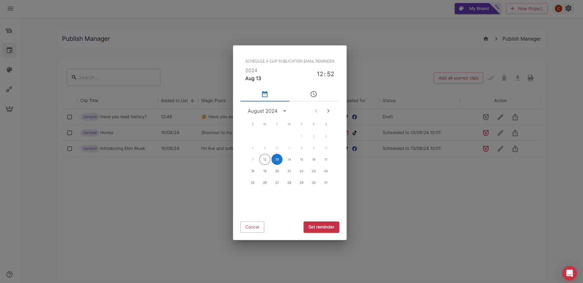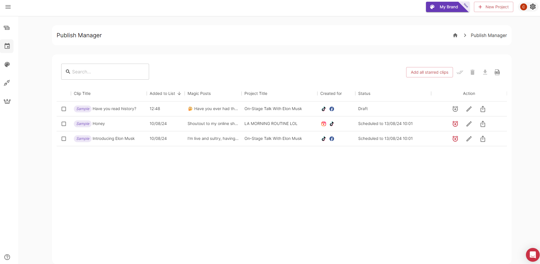 - Social Media Integration: Munch seamlessly connects with major social media platforms, allowing you to directly publish your repurposed clips with just a few clicks.