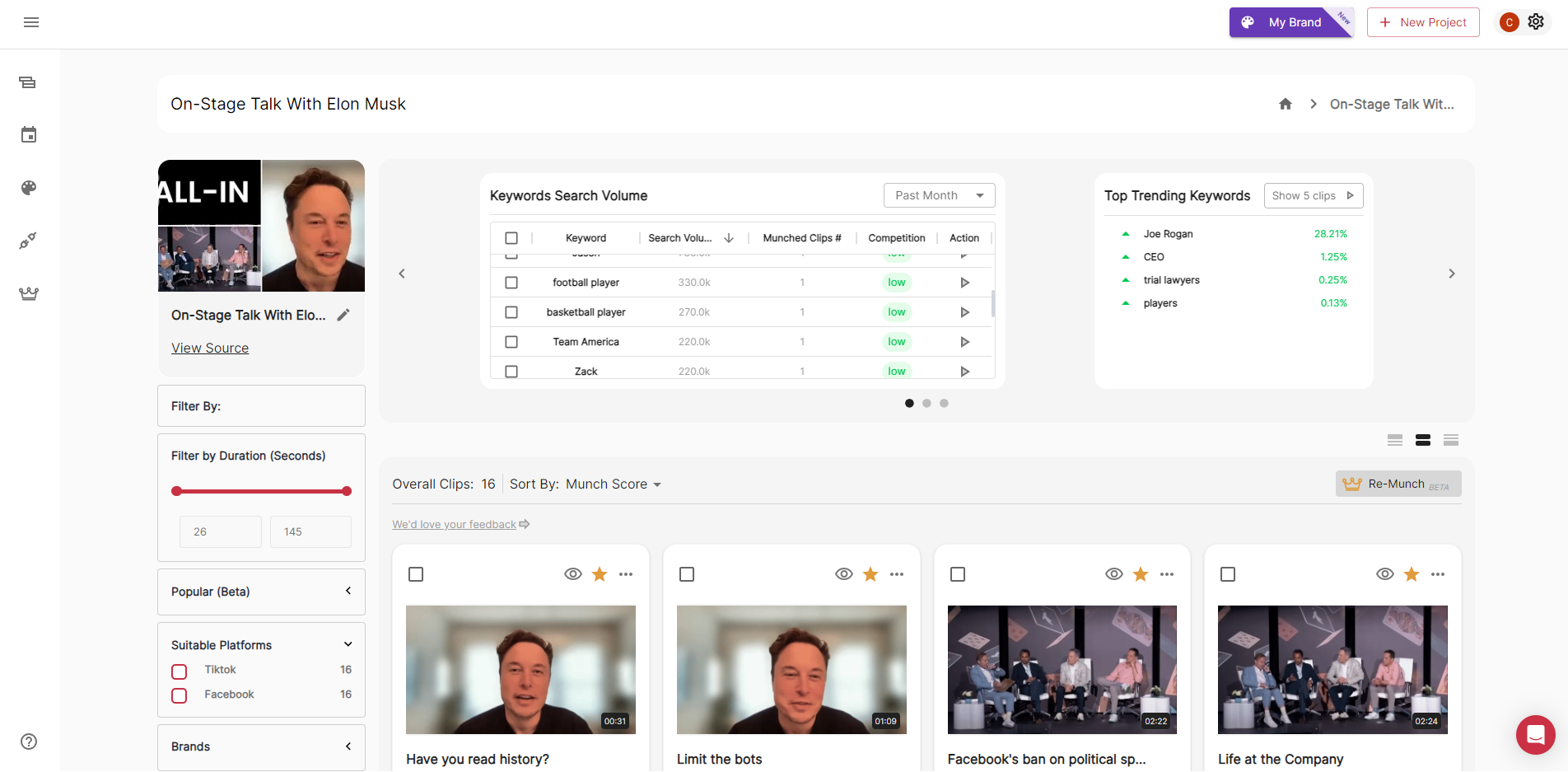 - Content Brainstorming: By analyzing your existing content, Munch can offer inspiration for new video ideas and formats.