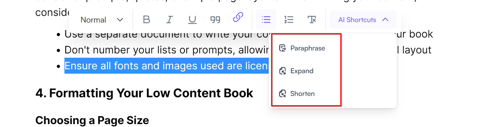- Content Rephrasing: The tool offers the ability to rephrase sentences or paragraphs to improve readability and eliminate redundancy, ensuring the content flows smoothly.