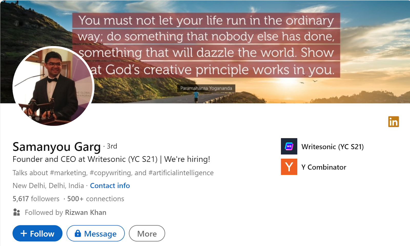 Recently, Samanyou has been inducted into the Forbes 30 under 30 in the Asia category. At the time of writing, Writesonic has seen big growth and has been backed by Y Combinator, an AI acceleration program. Additionally, they have received over $2.6M in total funding to date.
