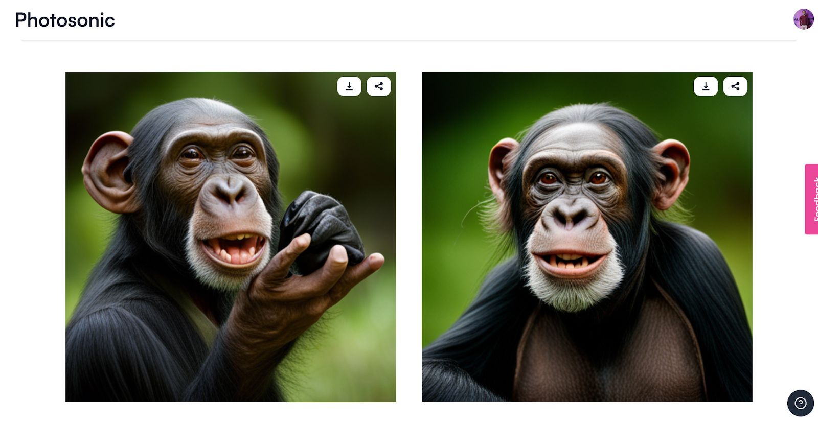 In the example below, I used the following input: “Hyper-realistic photo of a chimpanzee, taken by a photographer for national geographic.”